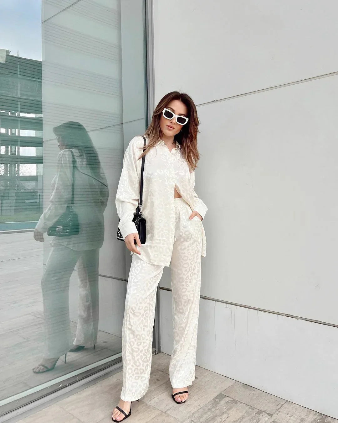 Een onvergelijkbare ervaring met de stijlvolle Single Breasted Blouse en de Wide Leg Pants: Ontdek onze exclusieve set, een meesterwerk van lichtheid en de hoogste kwaliteit. Elke naad, elk detail weerspiegelt de zorg en het vakmanschap waarmee dit unieke stuk is gemaakt.